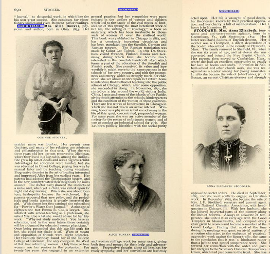 Entry on Stockham from American Women: Fifteen Hundred Biographies with Over 1,400 Portraits, published in 1897 by Mast, Crowell & Kirkpatrick in New York, Chicago, and Springfield, Ohio.